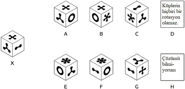X adlı küpün dönüşünü temsil eden seçeneği seçiniz.